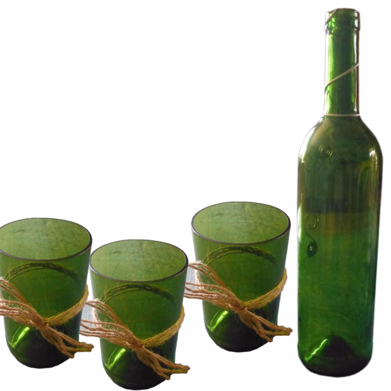 Our Upcycled Glass Tumblers, crafted from repurposed wine bottles, combine sustainability and style in every sip. Each tumbler is hand-cut and sanded, with its design and height determined by the unique shape of the original bottle. While the standard height is 12cm, we offer other sizes depending on bottle availability. Perfect for everyday use or special occasions, these tumblers can be purchased individually or as a set, adding an eco-friendly and elegant touch to your table.